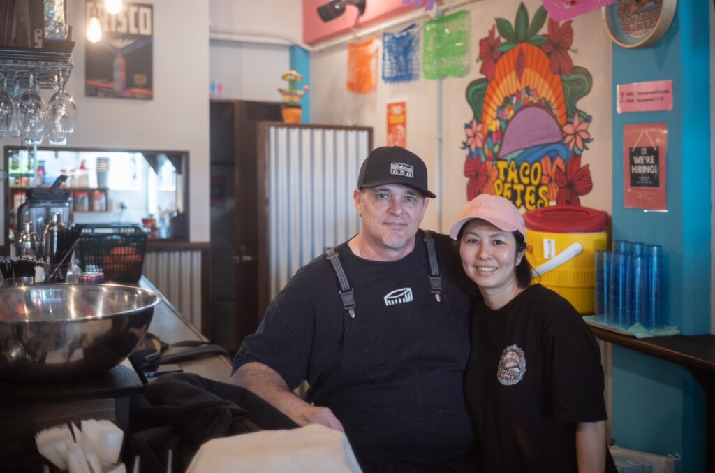 沖縄です。実は旦那はアメリカで橋の修繕の仕事をしていた人で、元々タコス屋じゃなかったんです(笑)。でも、カリフォルニア出身でメキシコからの移民が多いエリアで育ったので、彼にとってメキシコ料理はソウルフードみたいなものでした。仕事で沖縄に来た時に「知ってるメキシカンタコスがない!」と言って、昔メキシコのキッチンで働いていた経験を活かして「俺が美味しいのを作る!」と言い出したのが始まりです。